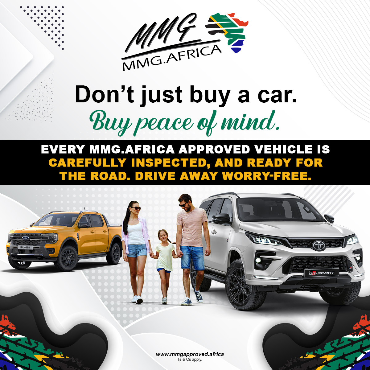 Every MMG.Africa Approved vehicle is carefully inspected, and ready for the road. Drive away worry-free.